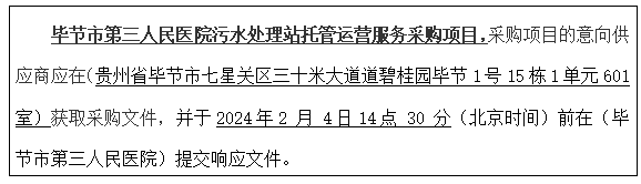 毕节市第三人民医院关于污水处理站托管运营服务采购项目的竞争性谈判公告